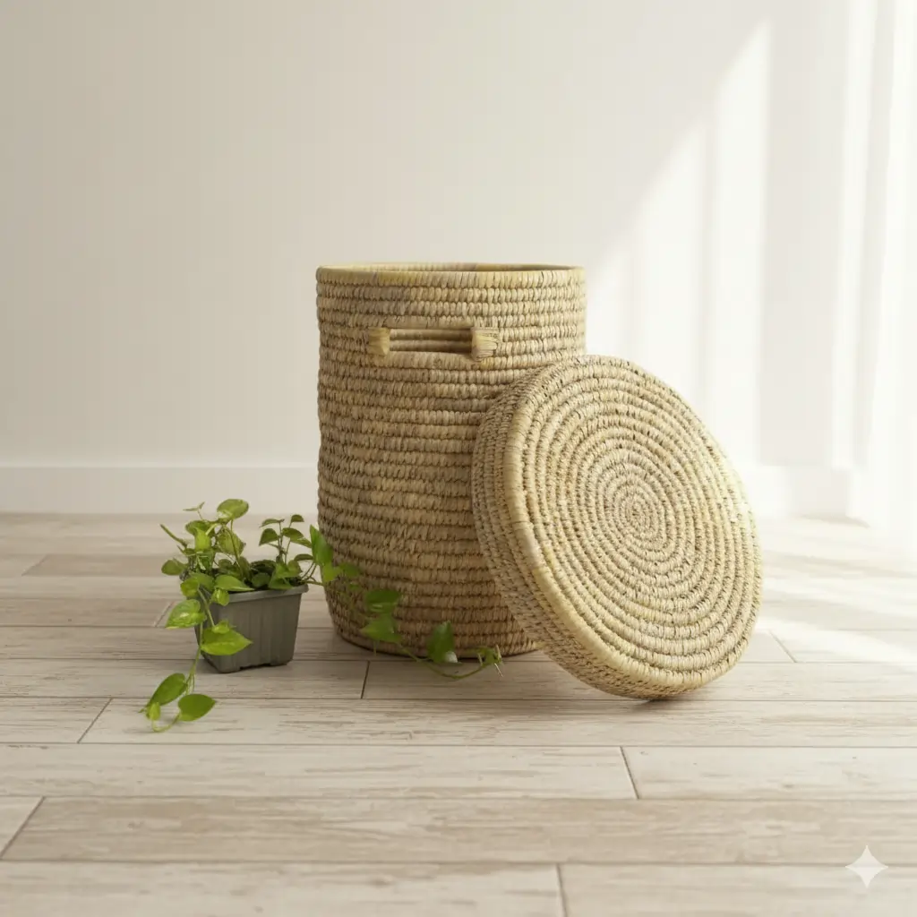 All products are made of 100% natural jute. Due to the handcrafted nature, each bin is unique, resulting in a slight variation in color and size.